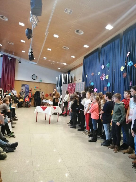 von den Schülerinnen und Schülern der ersten Klassen des Ingeborg-Bachmann- Gymnasiums Gedichte, Theater-, Musikstücke undWeihnachtslieder zum Besten gegeben. Weihnachtsfreude lag spürbar in der Luft!