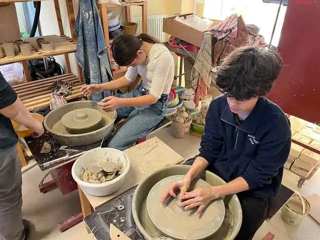 Die Keramikerin und Künstlerin Katalin Bollin führte die Schüler:innen in die Kunst des Töpferns ein – von der Arbeit an der Töpferscheibe bis hin zu verschiedenen Modelliertechniken wie der Daumenschale und der Wulsttechnik. 💫👐