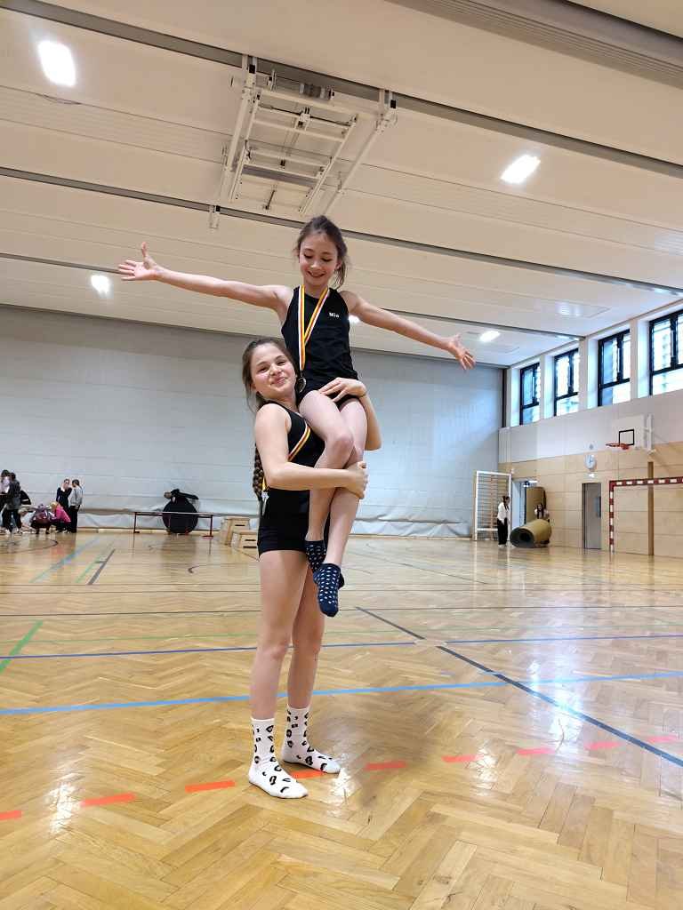 Beim Akro4Kids Cup in Spittal an der Drau haben Emilia Obereder und Mia Schaller mit ihrer beeindruckenden Leistung den zweiten Platz und die Silbermedaille erkämpft. 🥈Sie ließen damit 23 andere Duos hinter sich. 🍀 Ihr regelmäßiges Training in der Nachmittagsbetreuung, begleitet von Prof. Schönberg, hat sich also ausgezahlt! 🥳