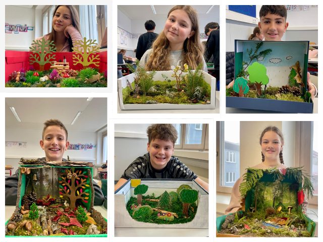 Im Rahmen des Biologie-Unterrichts haben die Schüler:innen der 2F ihren eigenen kleinen Wald im Schuhkarton gestaltet.