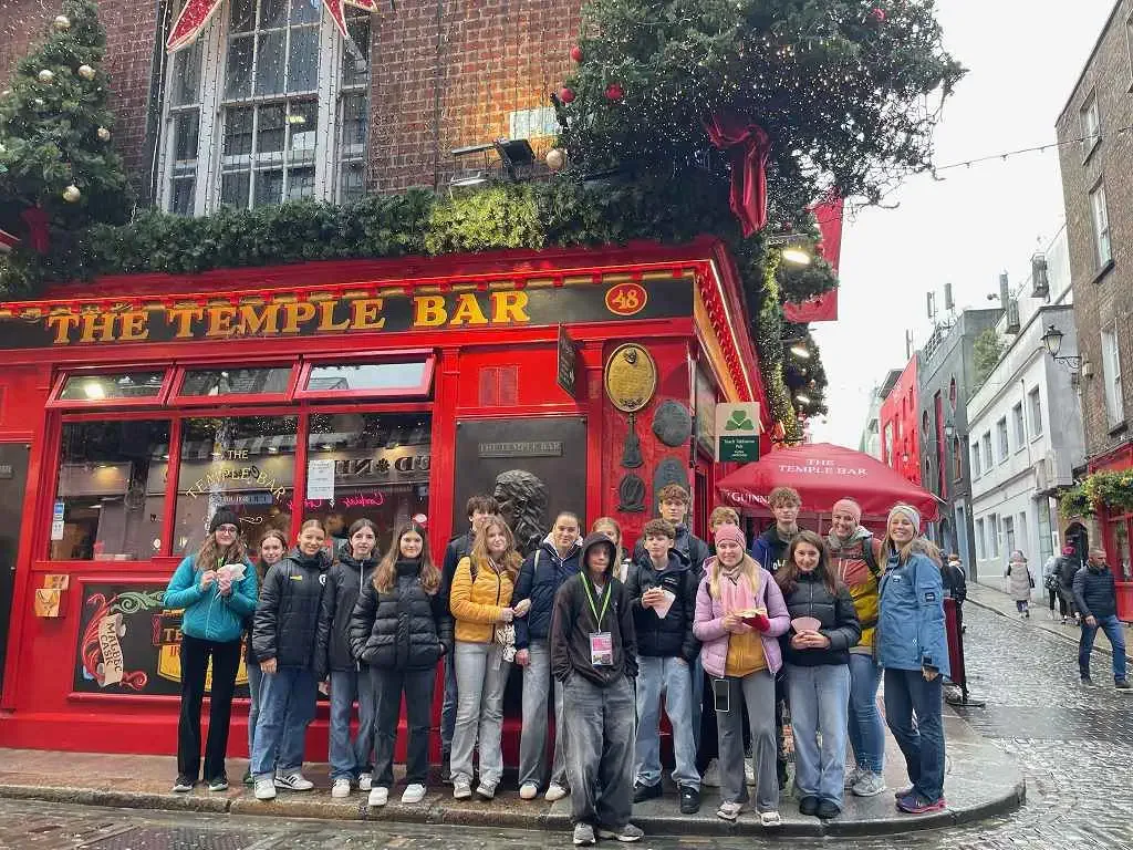 Ein Highlight der Reise war der Ausflug zu den beeindruckenden Cliffs of Moher, wo die Gruppe die atemberaubende Landschaft – begleitet von typisch irischem Wetter 🌧️ – genießen konnte. Auch eine regnerische Stadtführung in Dublin konnte die gute Stimmung nicht trüben: Mit Begeisterung erkundeten die Schüler:innen die Stadt und erhielten auf dem historischen Schiff Jeanie Johnston spannende Einblicke in die Geschichte Irlands. ⚓️