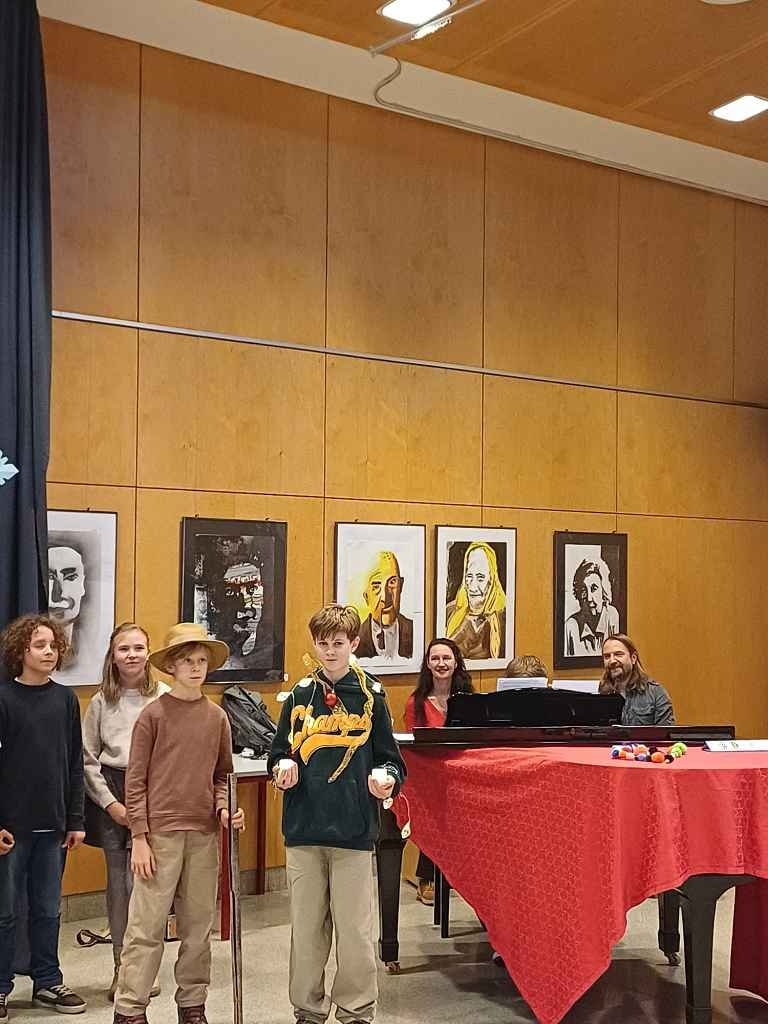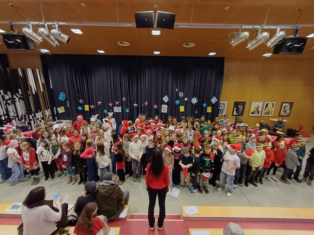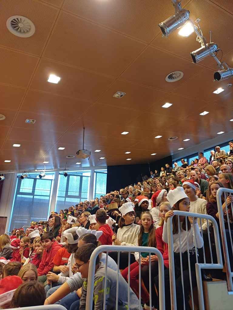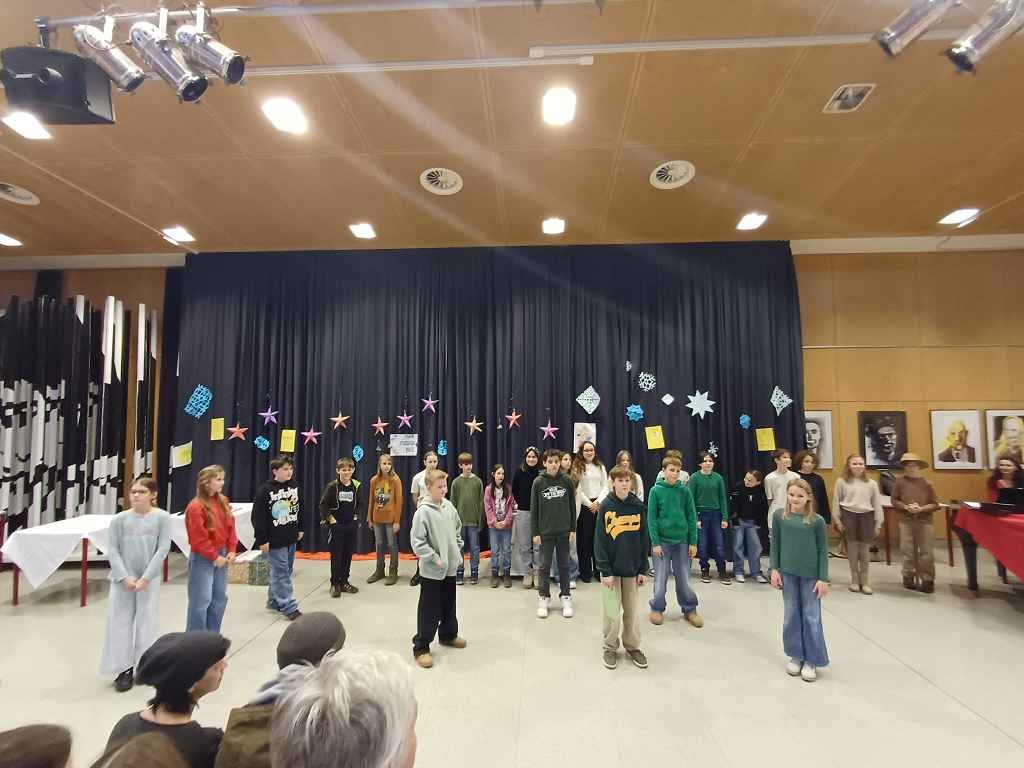 Der Bogen der Darbietungen erstreckte sich über Besinnliches 🕯️ („Weihnachts-ABC“, 1a, Prof. Sagmeister) und Heiter-Lustiges 😄 („The Wish Machine“, 1b, Prof. Riegler; „A Christmas Carol“, 1c, Prof. Pum; „Die Engelversammlung“, 1e, Prof. Ogris; „Weihnachtsbaum“, 1d, Prof. Pum und Prof. Joham; „Christmas Sketch“, Englischgruppe 1d und 1f, Prof. Redzic; „Herrliche Weihnachtszeit“, 1f, Prof. Malle-Schuler) bis hin zu Musikalisch-Beschwingtem 🎵 („Santa’s Glasses“, 1f, Prof. Lang und Prof. Knafl; „Jingle Bells“, 1c, Prof. Ogris; „Merry Christmas Everyone“, 1e, Prof. Ogris; „Weihnachtslied“, 1b, Prof. Petscharnig; „Oh Tannenbaum“, 1d, Prof. Joham). Das gemeinsam gesungene Schlusslied 🎶 („Feliz Navidad“) stellte den fulminanten Schlusspunkt ⭐ der heurigen ML-Weihnachtsfeier dar.