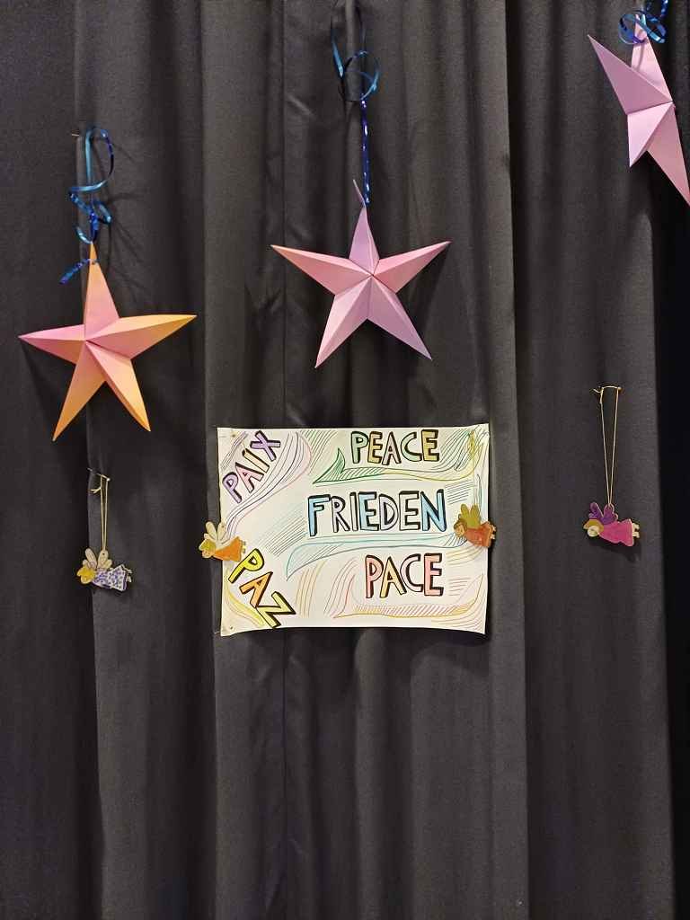 Bereits einige Wochen vor dem geplanten Termin ⏳ wurde von den Klassenvorständinnen und Klassenvorständen mit ihren Klassenlehrerteams 👩‍🏫👨‍🏫 und von den Musikprofessorinnen und -professoren 🎶 an den Beiträgen für die ML-Weihnachtsfeier auf Hochtouren 🚀 getüftelt und gefeilt. In den ML-Stunden wurden außerdem Falt- und Scherenschnittsterne ⭐✂️, kreativ gestaltete Weihnachtsbäumchen 🎄 und Friedensplakate 🕊️ für die Dekoration des Festsaals 🏛️ gebastelt und gezeichnet 🎨.