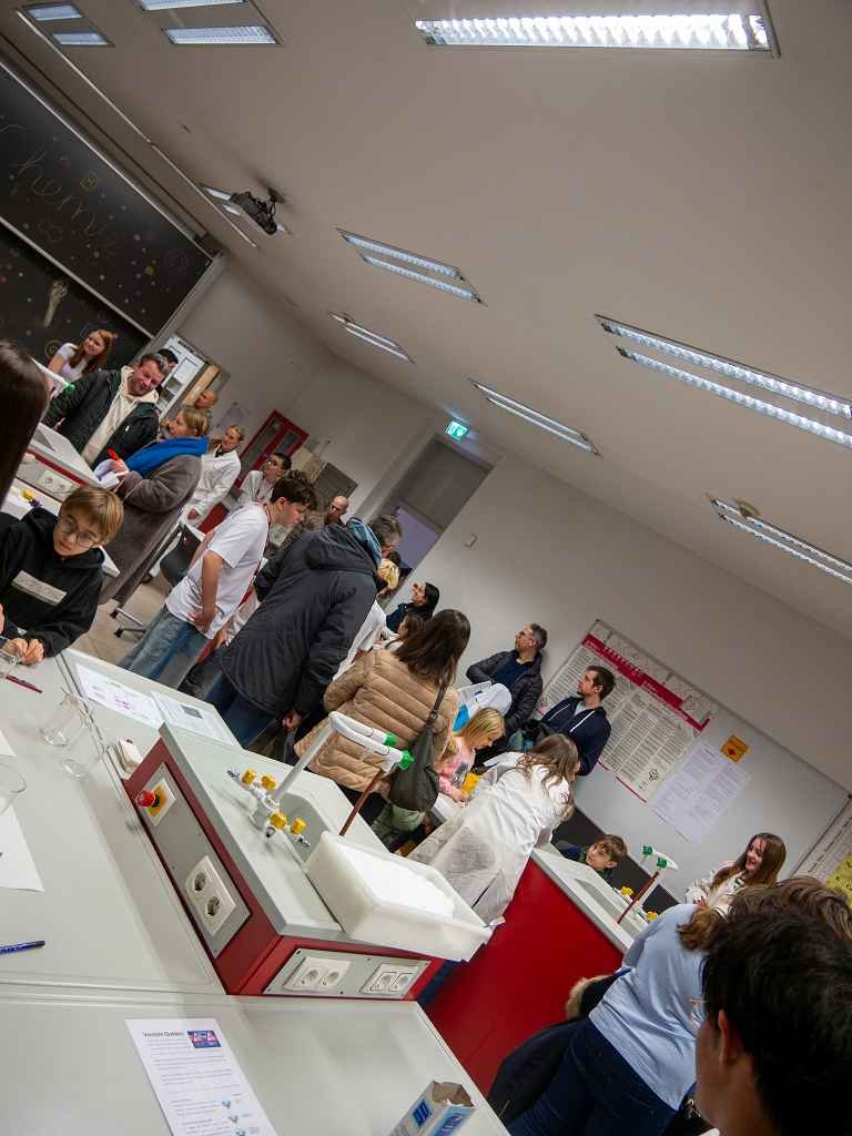 Die einzelnen Fächer präsentierten sich in kreativ gestalteten Räumen, in denen knifflige Rätsel, lustige Spiele und spannende Stationen vorbereitet waren, die von Schülerinnen und Schülern unserer Schule betreut wurden. Ob Zahlenabenteuer in Mathematik, Crêpes in Französisch, Tortillas in Spanisch, sprachliche Entdeckungsreisen, Experimente in den Naturwissenschaften, einem Infovortrag im Festsaal, kreative Projekte in Technik und Design – für jeden Geschmack und jedes Interesse war etwas dabei!