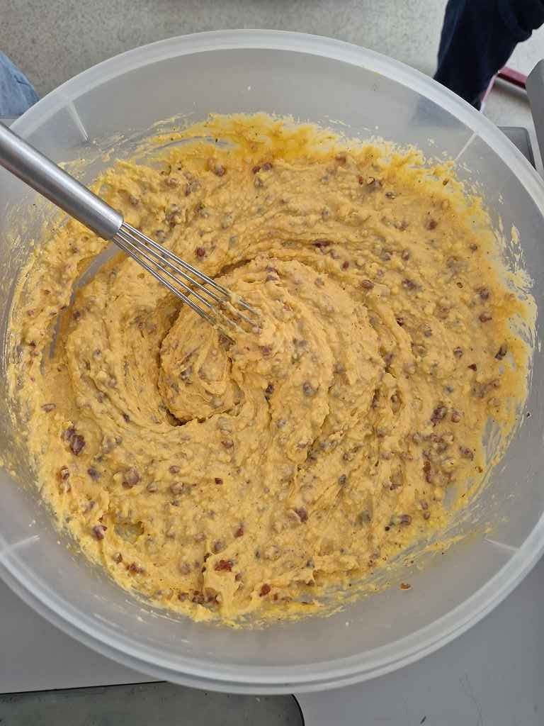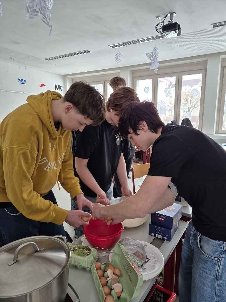 Abbiamo cucinato le Penne alla Carbonara, il capocuoco della nostra classe ha preparato la pasta e lui ha anche portato il tiramisu. Ci è piaciuto molto.
