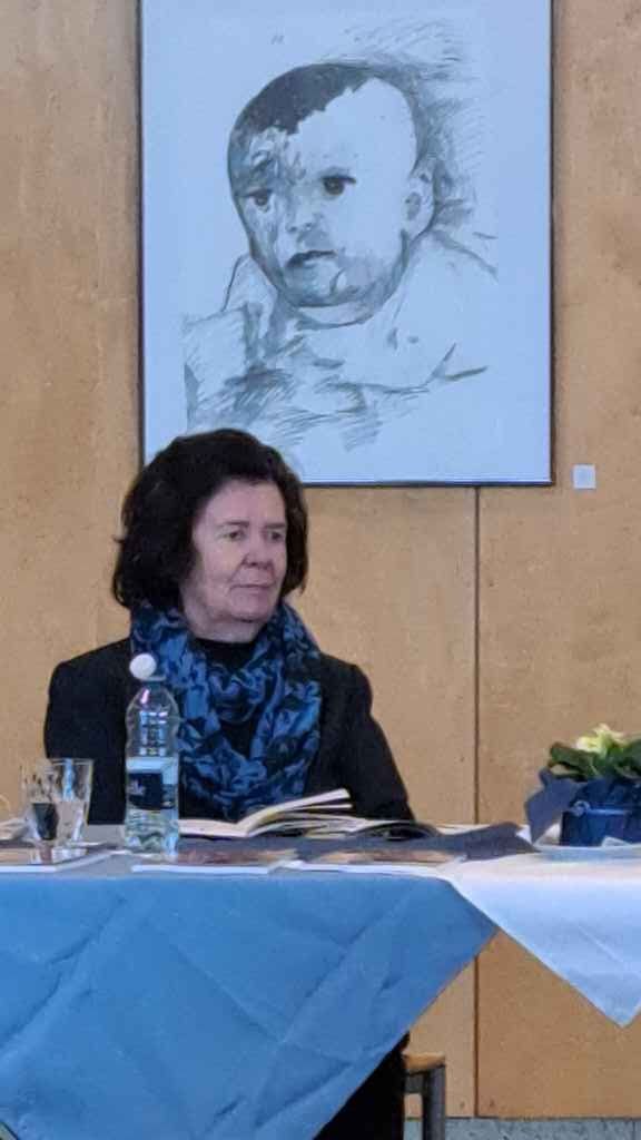 Die nunmehr 82-jährige Kärntner Slowenin gilt als einziges überlebendes Kind der NS- Frauen-Strafvollzugsanstalt Aichach in Oberbayern, in welchem sie von ihrer stark unterernährten Mutter Ursula am 14. Juni 1943 geboren wurde. Berührend und unter die Haut gehend waren die Textpassagen, die Frau Wurm-Olip aus ihrem 2019 veröffentlichten Buch „Mein Leben begann an einem Ort des Todes – Rojena na kraju smrti…“ vorlas: Als mit 1,2 kg Geburtsgewicht „als nicht lebensfähig“ bezeichnetes, eigentlich dem Tode geweihtes Baby, wurden an ihr von SS-Medizinern in den ersten Lebenswochen über vierzig medizinische Versuche durchgeführt; eine etwa15 Zentimeter lange Narbe am Oberarm zeugt noch heute von diesen unbeschreiblich bestialischen Grausamkeiten.
