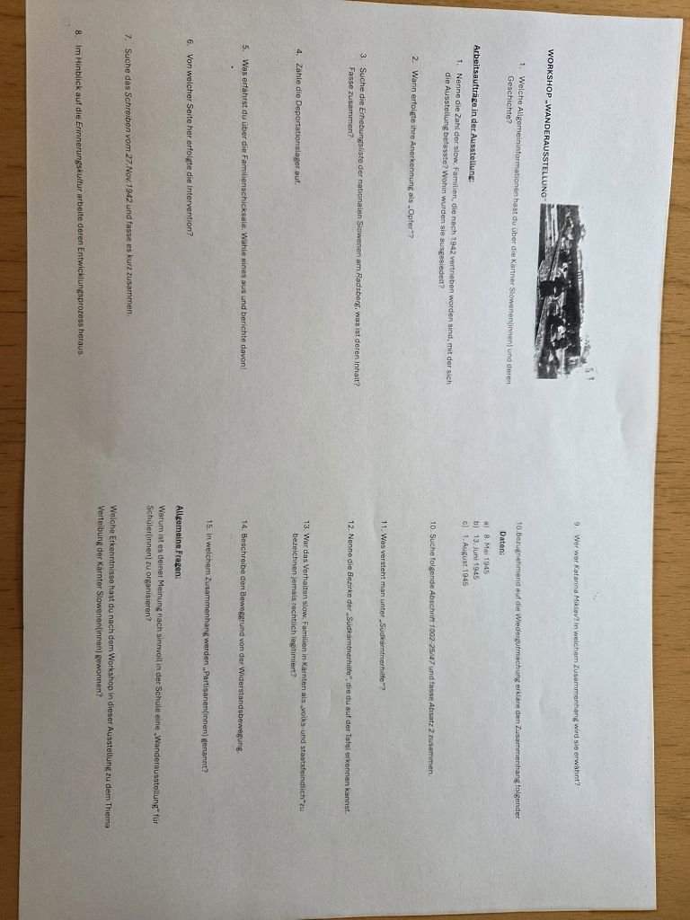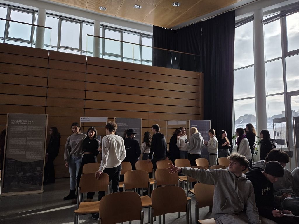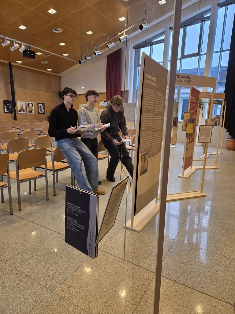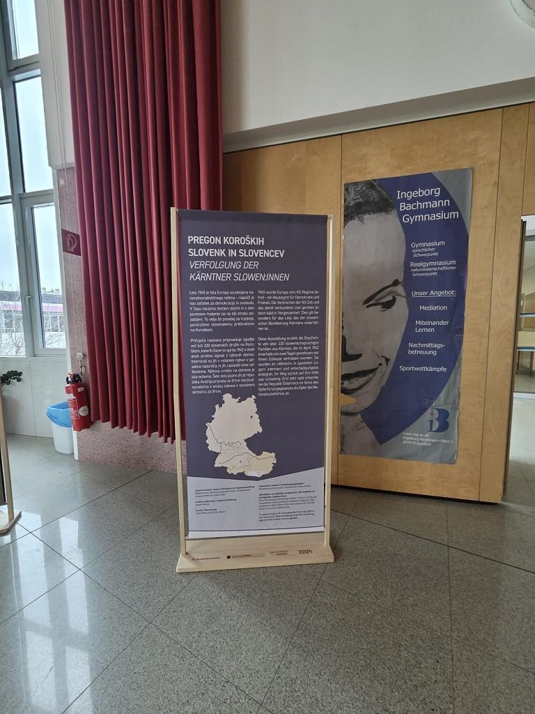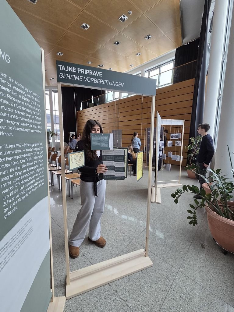 Von 19.1.2026 bis zum 23.1.2026 konnte des Weiteren im Festsaal die Wanderausstellung „Die Verfolgung der Kärntner Slowenen in der NS-Zeit“ besucht werden. Anhand der Wanderausstellung wurden die Schüler: innen angehalten, die historischen Hintergründe der Aussiedlung der Kärntner Slowenen zu reflektieren. Dabei standen nicht nur die Zahlen und Fakten, sondern vor allem die Mechanismen der Nationalsozialistischen Ideologie im Vordergrund. Durch das Studium von Einzelschicksalen, von Fotos, Feldpostbriefen, Dokumenten, Zeitungsberichten, bekam die Geschichte ein Gesicht. In Arbeitsgruppen setzten sich die Jugendlichen mit den Schicksalen der verschleppten Männer, Frauen und Kinder auseinander. Dabei war es besonders berührend, als die Schüler: innen merkten, dass es sich bei den Verschleppten um Personen aus ihrem familiären Umfeld handelt. Die Schüler: innen sollten letztendlich verstehen, dass Erinnerungskultur nicht nur ein Blick zurück ist, sondern das Fundament für eine Gesellschaft, in der Vielfalt als Reichtum und nicht als Bedrohung gesehen wird.