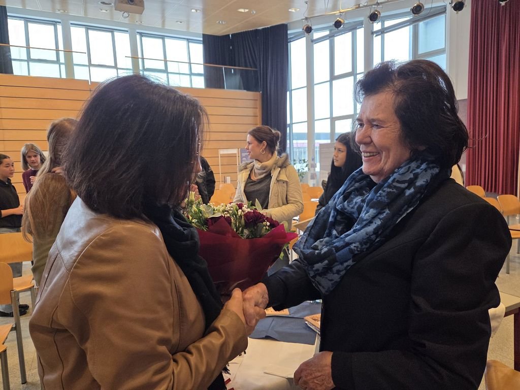 Einen außerordentlichen Höhepunkt erreichte das Projekt „Erinnerungskultur“ durch den Besuch der Zeitzeugin Anica Wurm-Olip. Am 23.1.2026 berichtete sie im Festsaal in Anwesenheit mehrerer Oberstufenklassen, des Direktors und zahlreicher Lehrer: innen über ihre traumatischen Erlebnisse in der NS-Zeit.
