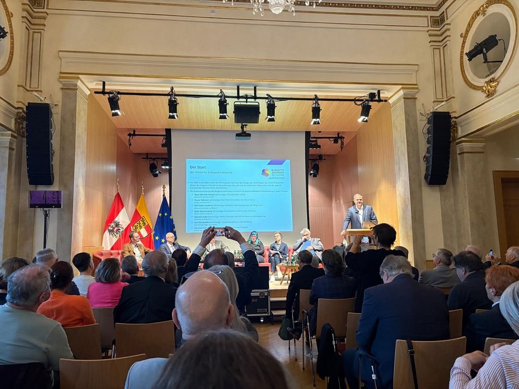 Das erste Projekt war am 22.10.2025 die Teilnahme der 8.a Klasse am 35. Europäischen Volksgruppenkongress, um die Geschichte der österreichischen Volksgruppen besser kennenzulernen. Die Maturant: innen wurden vom Herrn Direktor Markus Krainz, von Prof. Andrea Malle-Schuler und Prof. Angelika Resztej begleitet.