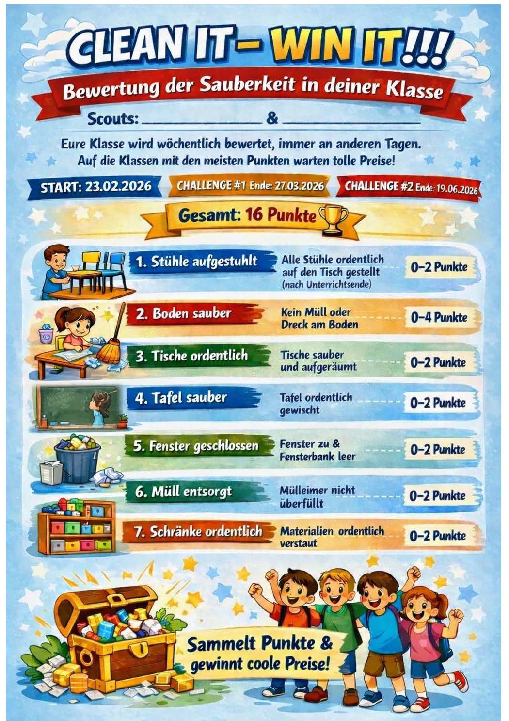 Saubere Klasse = Punkte sammeln = gewinnen!