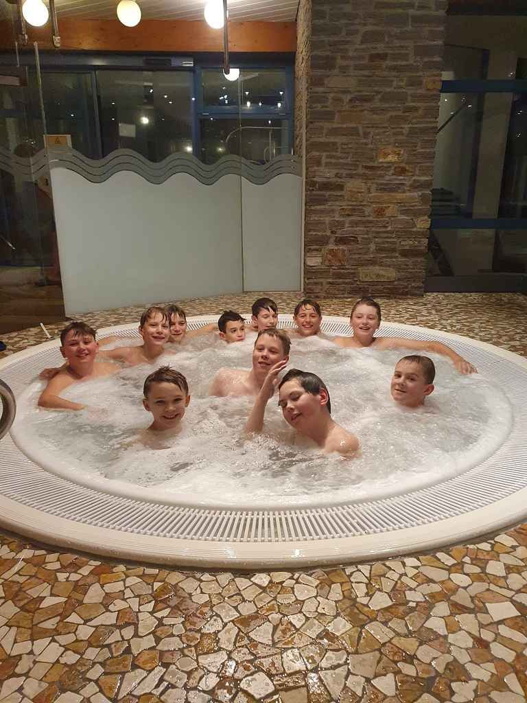 Auch abseits des Skifahrens war einiges los: hoteleigener Pool, Trampolinhalle und Nachtskilauf standen am Abend auf dem Programm.