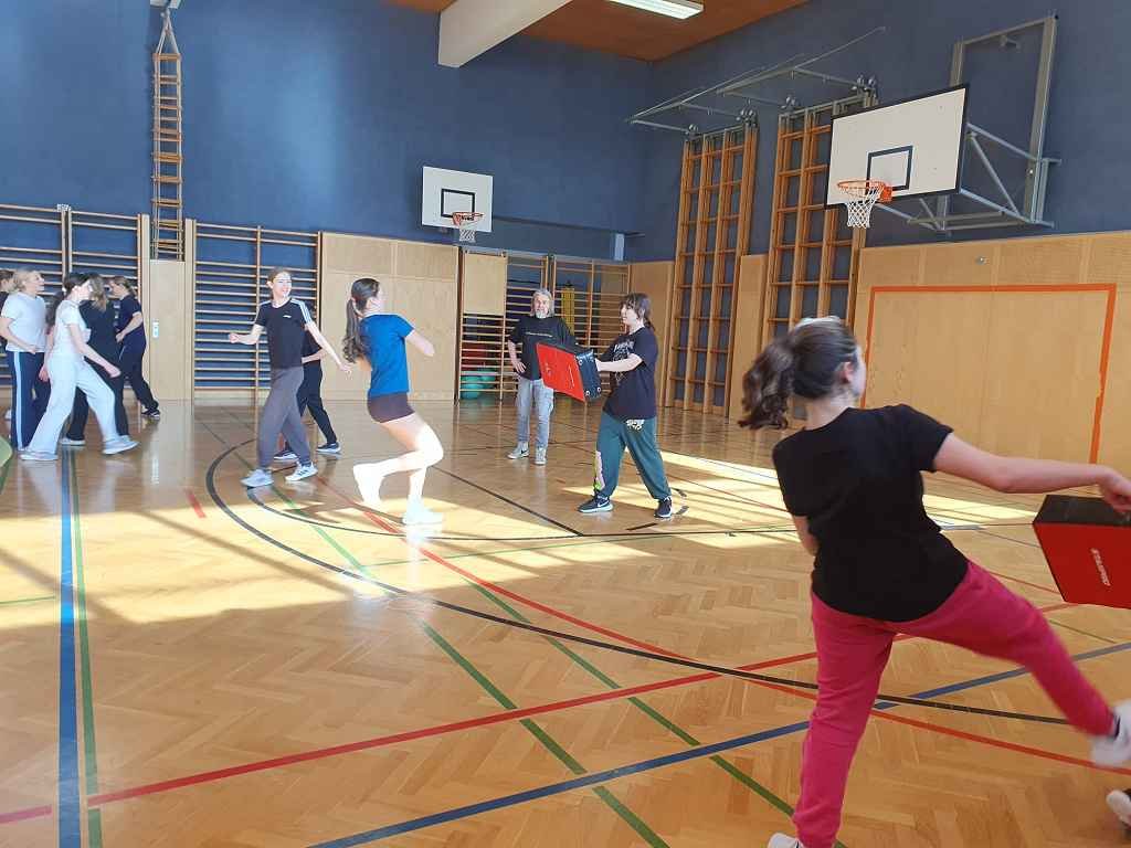 Am 24. März hatten die Schülerinnen der 4bi, 4fr sowie der 6. Klassen die Möglichkeit, sich in Selbstverteidigung zu üben.