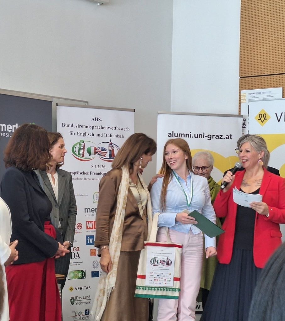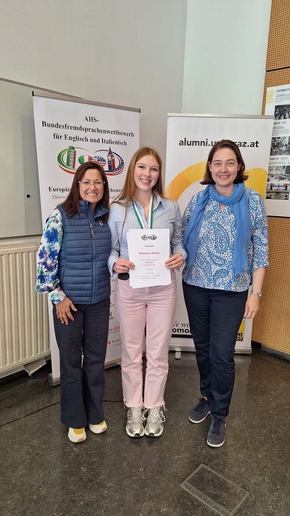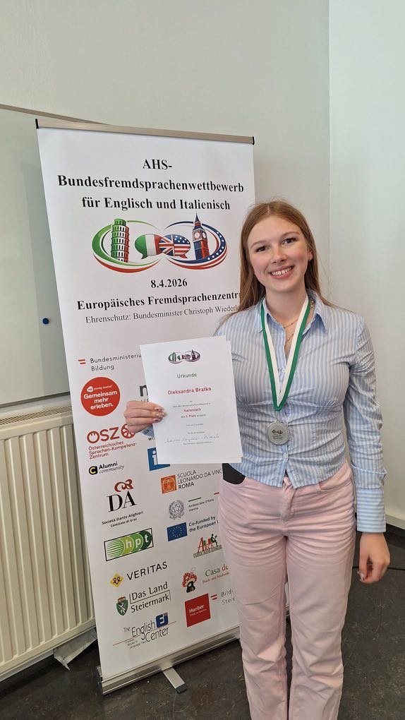 Oleksandra (8b) hat beim AHS-Bundesfremdsprachenwettbewerb im Europäischen Fremdsprachenzentrum in Graz den 2.Platz gewonnen!