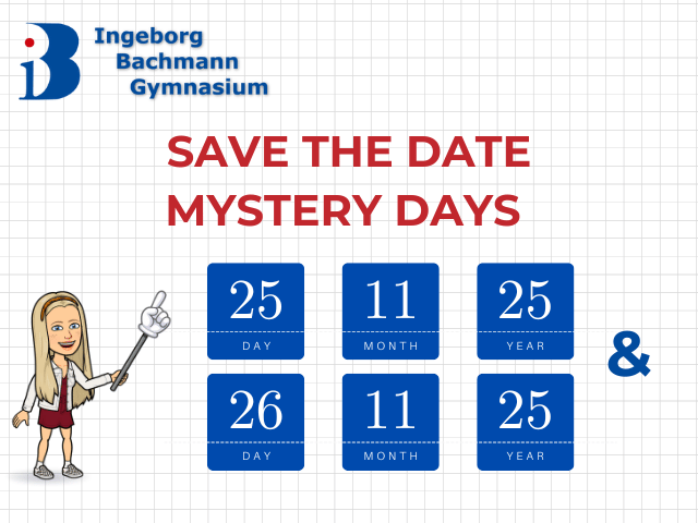 Am 25. und 26. November 2025 finden am Ingeborg Bachmann Gymnasium wieder unsere beliebten Mystery Days statt. 🎓✨