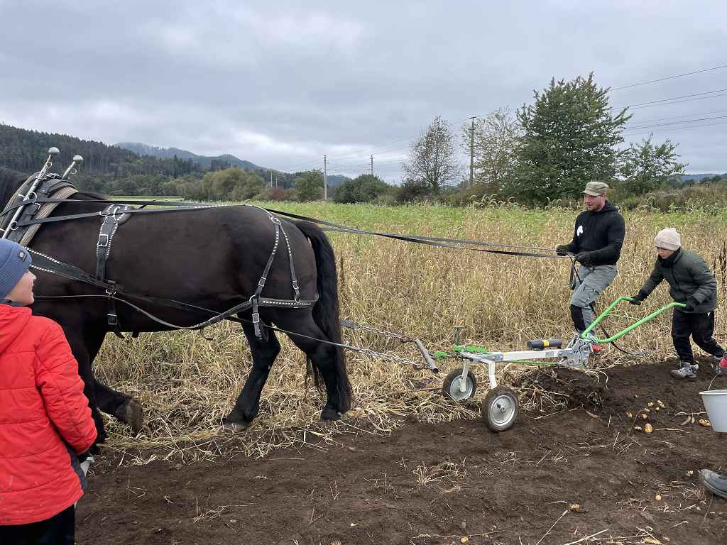 Die 3er-Klasse lernte am Sonnwerk-Acker bei Maria Saal hautnah, was es bedeutet, Biokartoffeln anzubauen und zu ernten. 🌱