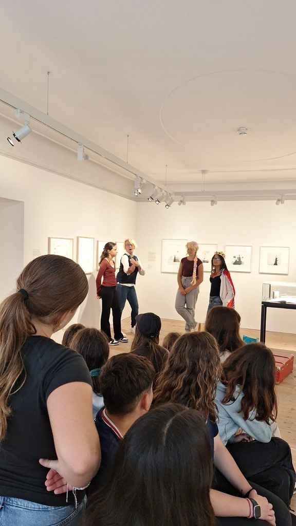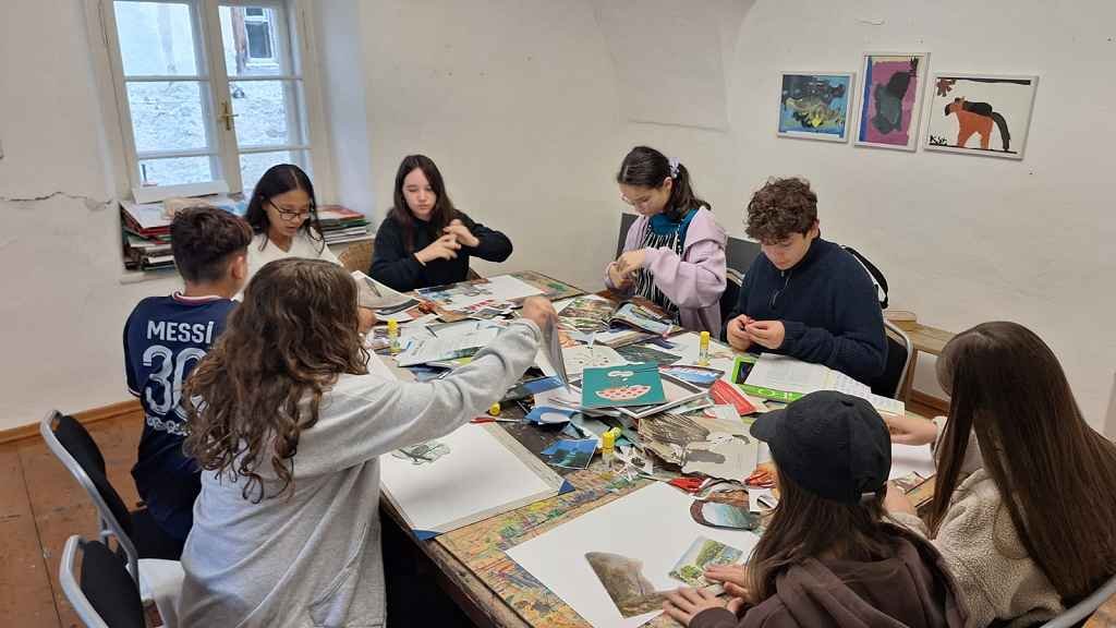 Nach einer altersgerechten Führung setzte die 3BI das Gesehene kreativ um und gestaltete im Sinne von Hockney dynamische Collagen. ✂️🖌️